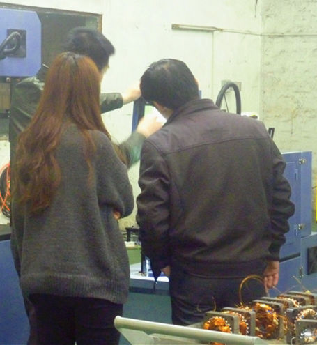 陽春3月,華源公司業(yè)務(wù)部喜訊不斷,新老客戶紛紛向我們采購嵌線設(shè)備。勒流新客戶是專業(yè)生產(chǎn)抽油煙機(jī)電機(jī)的,由于訂單增多,手工下線的數(shù)量已遠(yuǎn)遠(yuǎn)滿足不了訂單的需求,加上熟手員工不多,于是他們?nèi)鲁醣銇淼饺A源公司參觀并迅速向我們采購了一組嵌線設(shè)備,包括組合式嵌線機(jī),單面綁線機(jī),預(yù)整形機(jī),最終整形機(jī)。