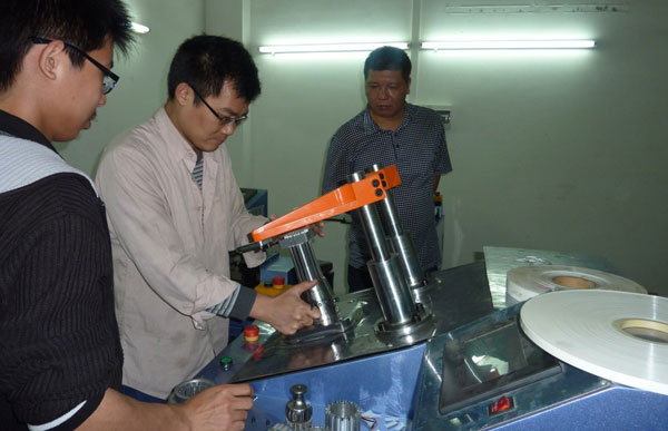 今天開始樂普達的培訓(xùn)。樂普達電機公司在二月底向本公司購買了兩組嵌線設(shè)備,包括電機嵌線機、電機綁線機、電機槽紙機、電機槽片機、電機初整形機和電機終整形機。前天已經(jīng)生產(chǎn)和調(diào)試完畢,現(xiàn)在已經(jīng)運往樂普達電機公司其車間進行試產(chǎn)。圖為本公司技術(shù)人員正在為客戶解說設(shè)備的操作和應(yīng)注意事項。