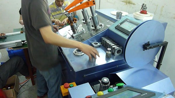 昨天,室外溫度高達(dá)29度,天氣炎熱無比,這樣高溫炎熱的一天也是豐鈺試產(chǎn)的拉開序幕的第一天。今年3月初豐鈺公司正式和本公司達(dá)成合作協(xié)議,在本公司訂購(gòu)了整組嵌線設(shè)備,更包含了本公司新款高速槽紙機(jī),電動(dòng)槽片機(jī),改良新型內(nèi)張型初整形機(jī),和定子嵌線機(jī),單面綁線機(jī)和定子終整形機(jī)。在4月份已經(jīng)送往,計(jì)劃4月25號(hào)開始試產(chǎn)。